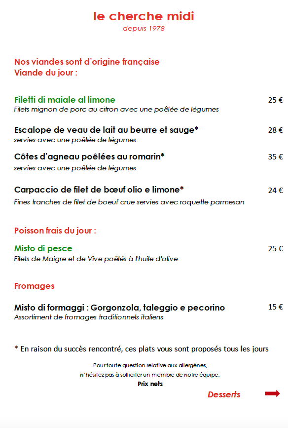 menu